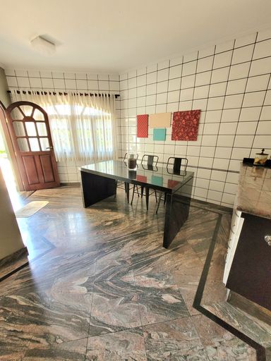 SOBRADO SEMIMOBILIADO COM 03, DORMITÓRIOS, SENDO 01 SUÍTE, 03 BANHEIROSBANHEIRO, SALA DE ESTAR, SALA DE JANTAR, COZINHA, LAVABO, ÁREA DE SERVIÇO, DEP. EMPREGADA, VARANDA AMPLA COM CHURRASQUEIRA, QUINTAL E GARAGEM COBERTA.