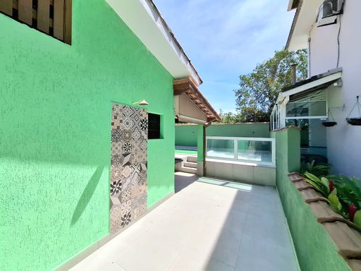 CASA TÉRREA COM 02 DORMITÓRIOS, SENDO 01 SUÍTE, BANHEIRO, SALA, COZINHA, MEZANINO, AR CONDICIONADO, ÁREA DE SERVIÇO, VARANDA, VARANDA GOURMET, PISCINA.